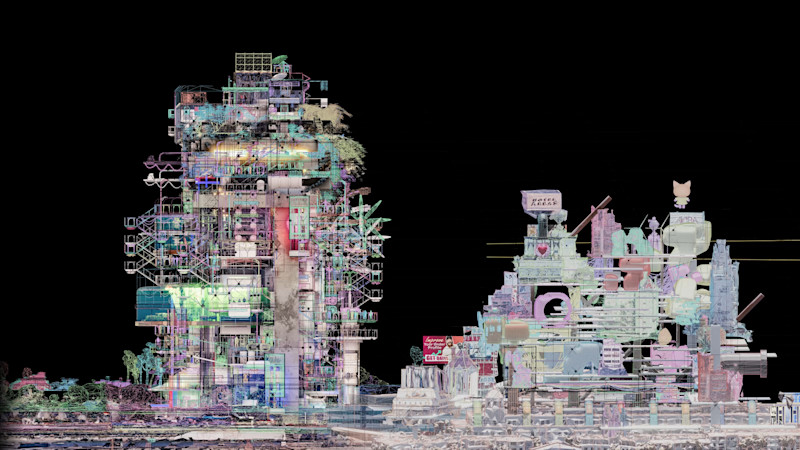 The hardware infrastructure needed to support the contemporary media ecologies has a vast material impact on our environment. These material manifestations can be seen in various stages in the lifecycle of digital technology: from extraction of raw materials, transportation and production, to energy needed to operate networks and data centres, to disposal and e-waste. Data centres are essential infrastructures enabling media ecologies, and often owned by tech companies. They are used platform economies that use data to extract value from local markets. They are often housed in anonymous architectural structures isolated from their direct surroundings and the communities that live there. The reclaiming data centres project proposes a more beneficial relationship data centres, local urban environments and communities. We looked at three platform economy services – uber drivers, food production and delivery, online dating and sex workers - and envisioned how these communities would reclaim three data centres within Los Angeles. The project was designed through web scraping, ripping models of exiting data centres and their environments and remixing them through mixing different models together (kitbashing).